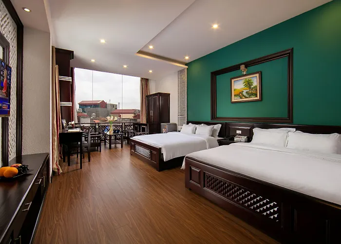 3つ星Duc Trong Hotel ハノイ市はハンダイ・スタジアムなどのスポーツ施設から3.4kmの距離に位置し、都市の景色を望む35室の客室を提供しています。 駐車場もあります。
